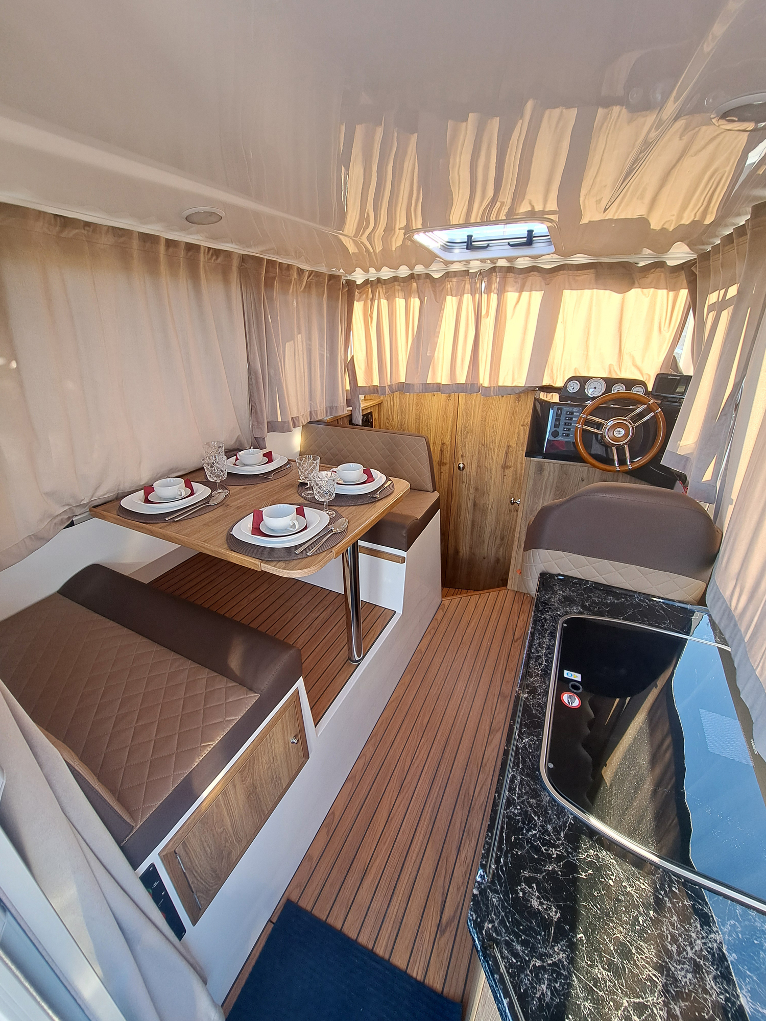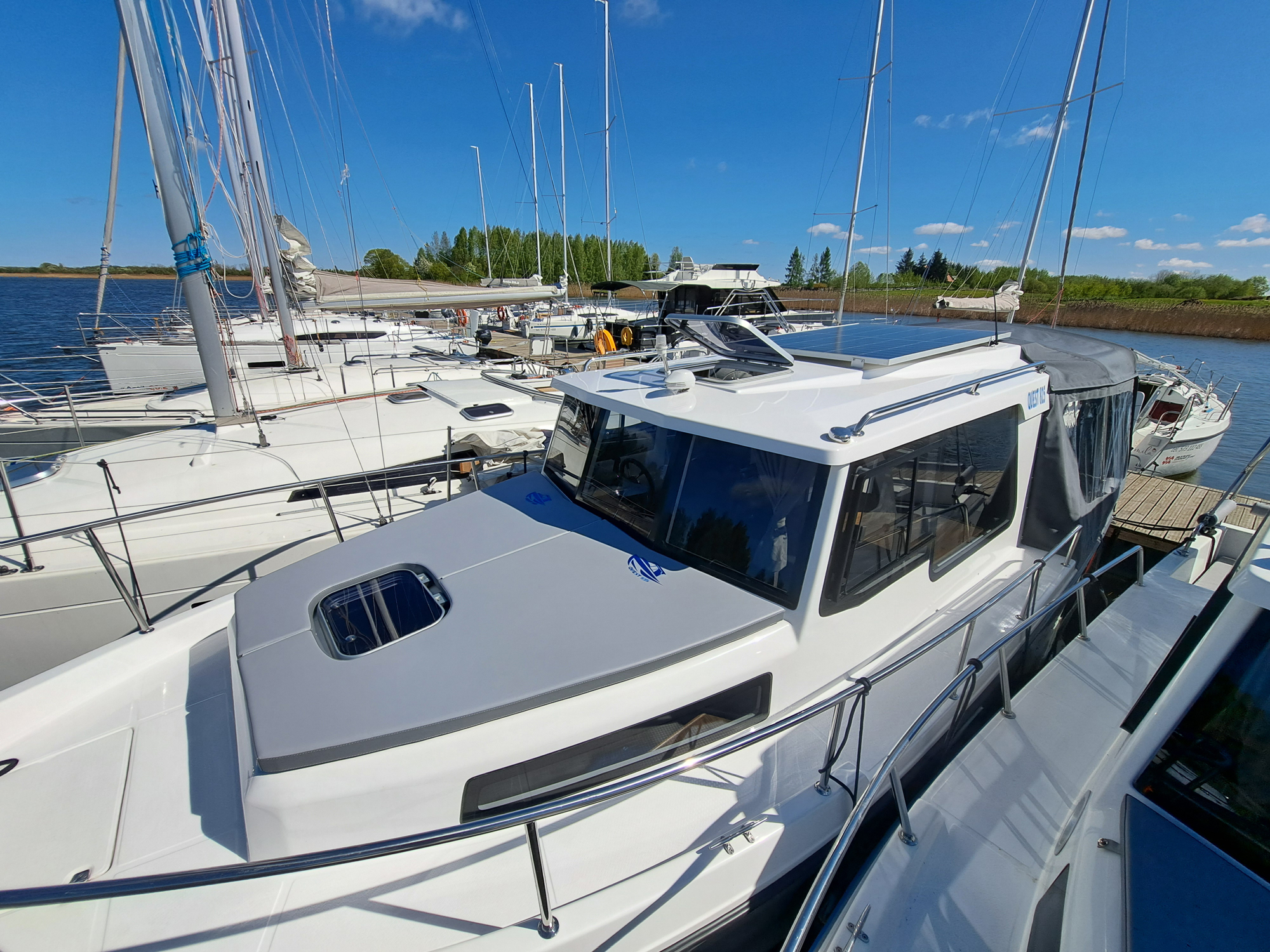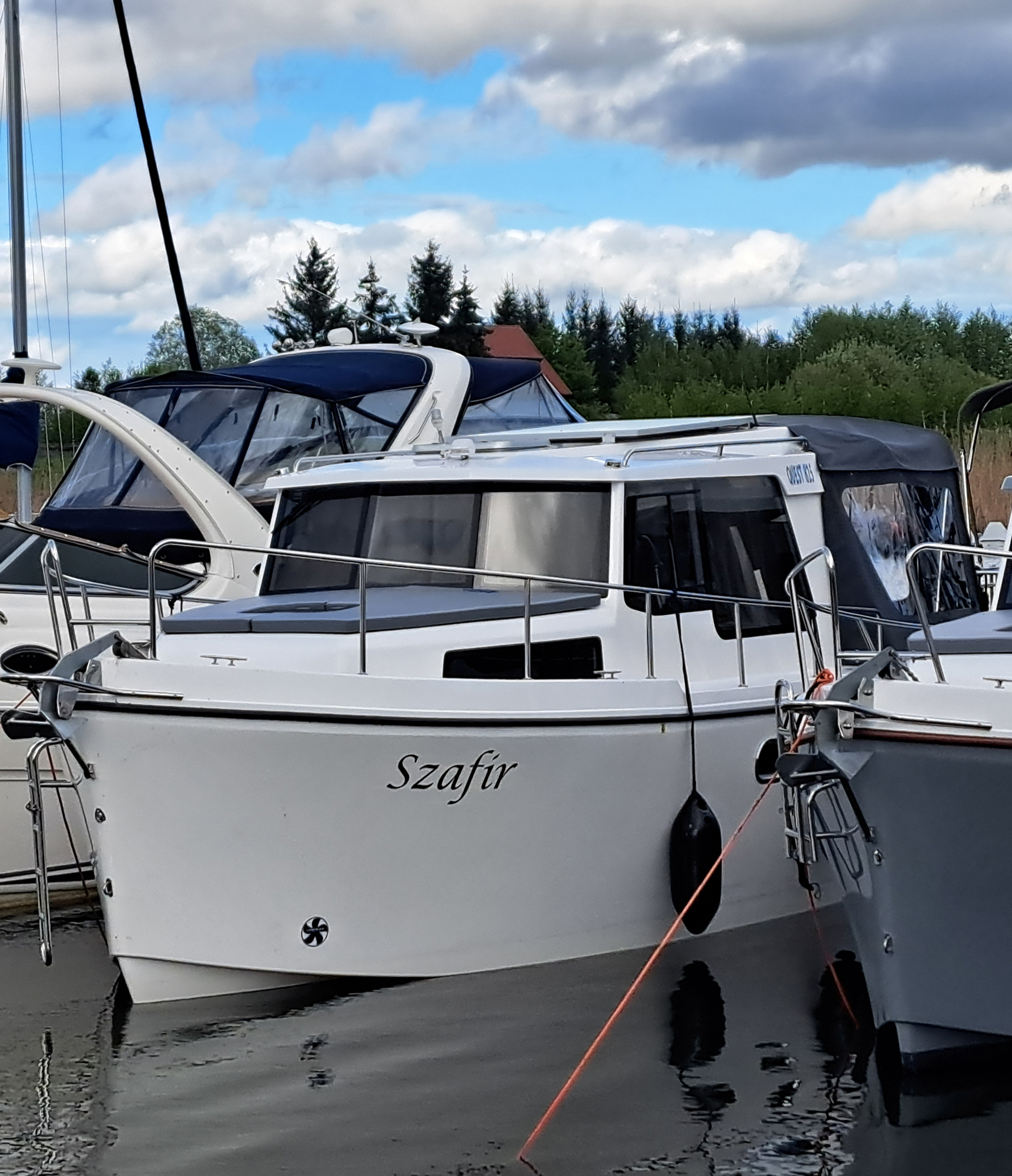 Jach motorowy tworzący nową jakość w segmencie jachtów wypornościowych. Cechuje go nowoczesna sylwetka z wygodnym kokpitem i przestrzennym pokładem oraz komfortowym wnętrzem mieszkalnym. Dajemy możliwość wypoczynku na całych Mazurach wraz z noclegiem nawet dla 6 osób, z wyposażonym kambuzem, wc morskim i prysznicem na jachcie.