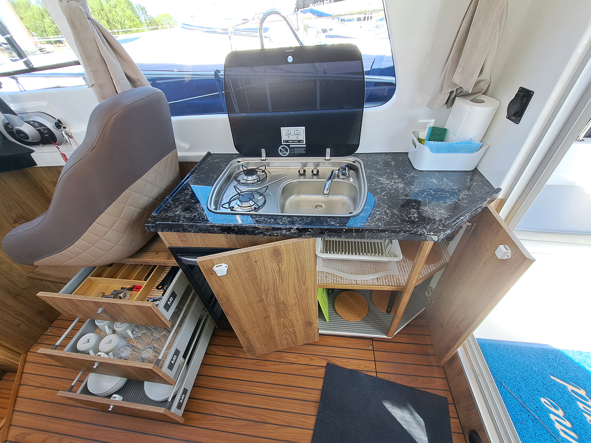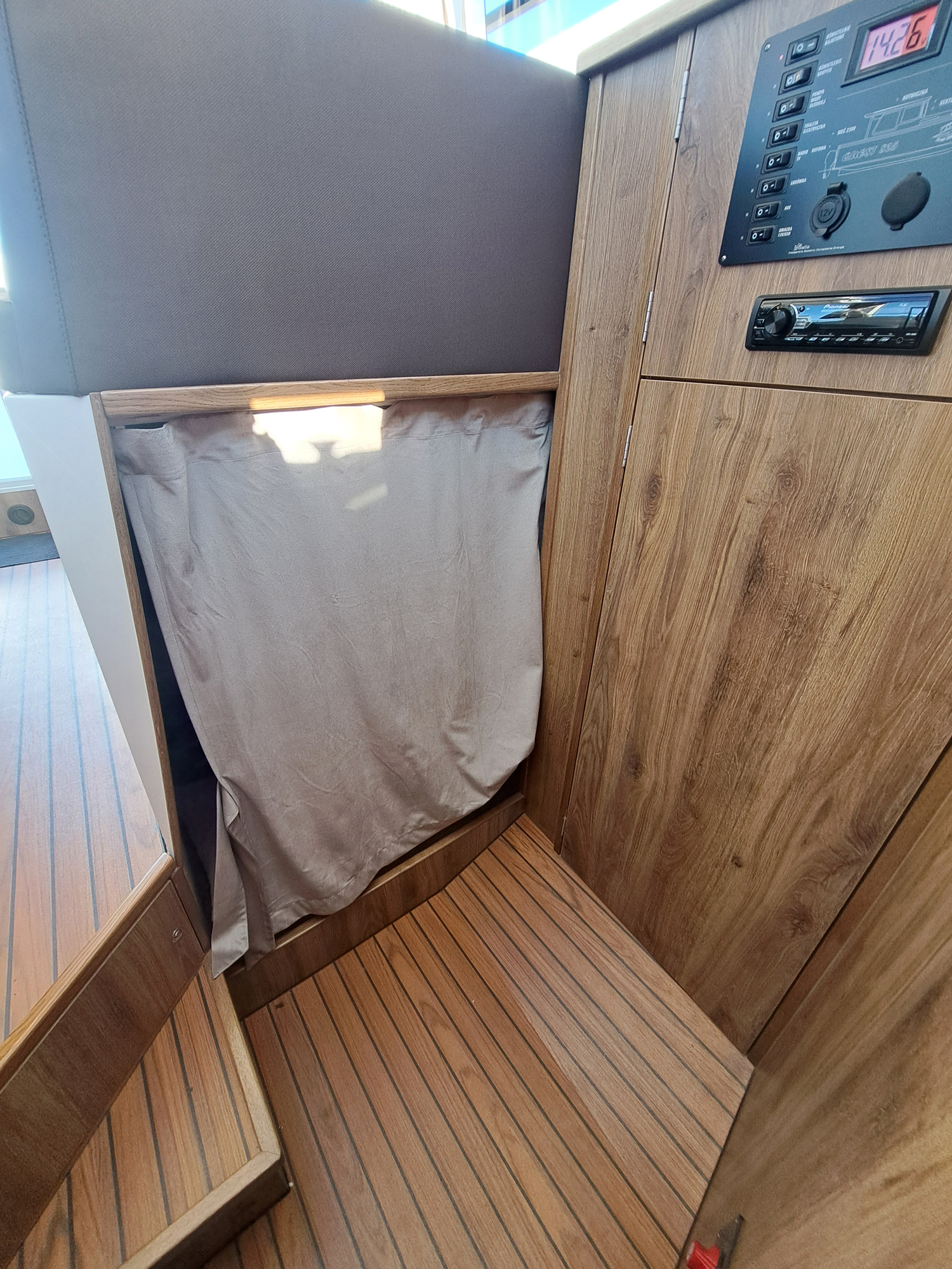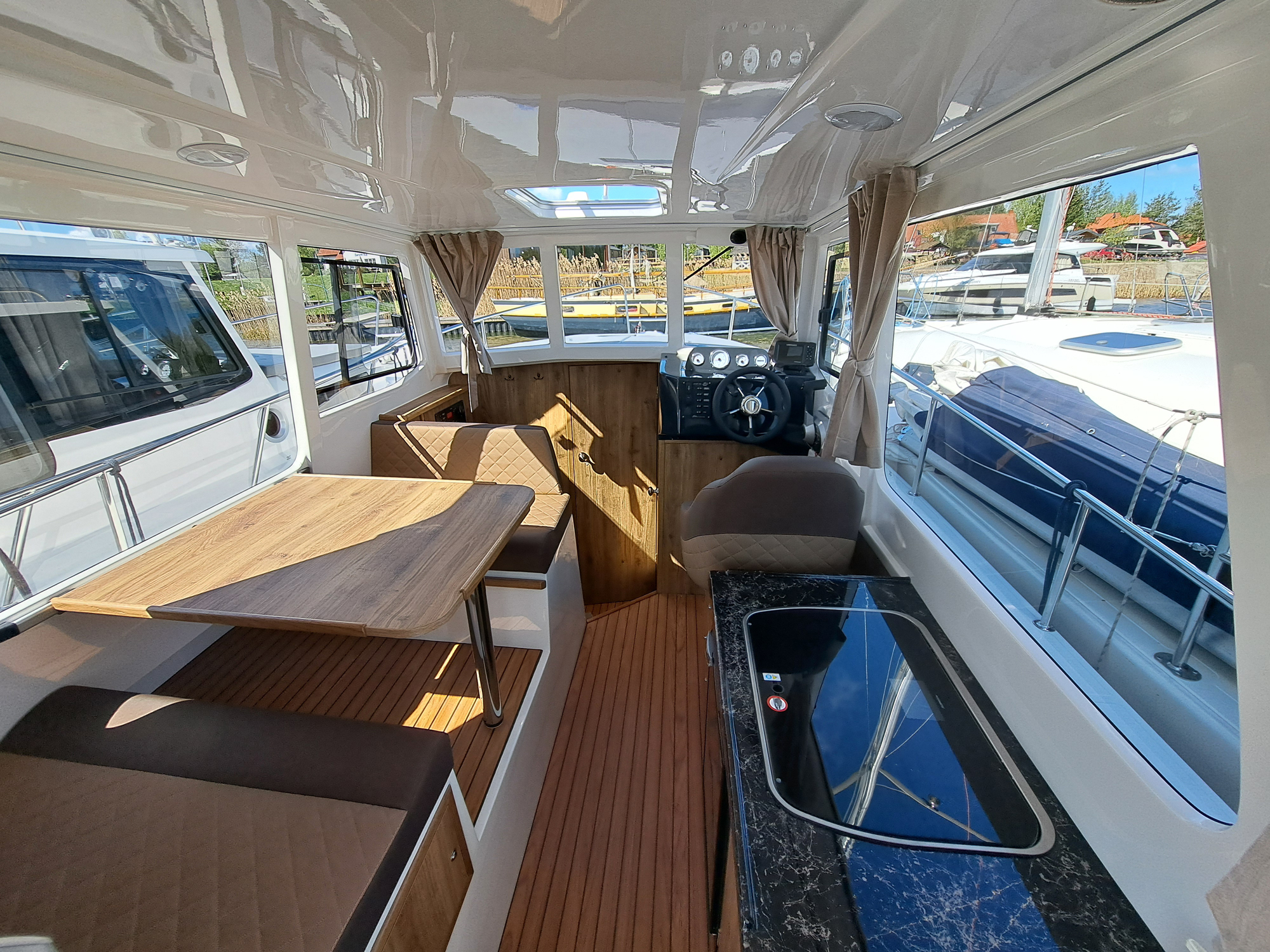 Jach motorowy tworzący nową jakość w segmencie jachtów wypornościowych. Cechuje go nowoczesna sylwetka z wygodnym kokpitem i przestrzennym pokładem oraz komfortowym wnętrzem mieszkalnym. Dajemy możliwość wypoczynku na całych Mazurach wraz z noclegiem nawet dla 6 osób, z wyposażonym kambuzem, wc morskim i prysznicem na jachcie.